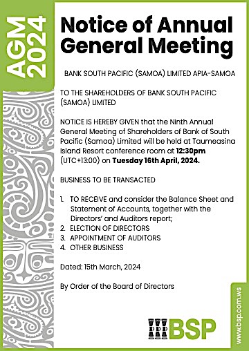 Share this: Share on Facebook (Opens in new window) Facebook Share on X (Opens in new window) X Related Share via: Facebook Twitter LinkedIn More Related posts: Samoa Shipping Corporation Vacancy Advertisement. JOB VACANCIES – FOOTBALL FEDERATION SAMOA CBS Request For Proposals FOTU SAMOA II TRIP APIA-PAGO PAGO Post navigation OPINION : Easter Eggs in Apia and in Pago THEN and NOW. A Picture Says It All.