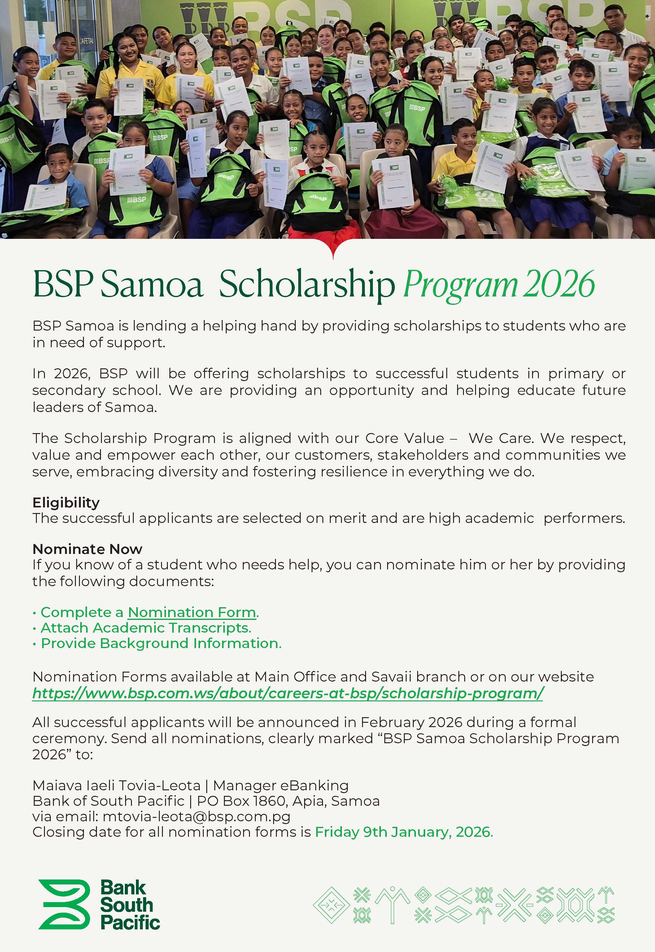 Share this: Share on Facebook (Opens in new window) Facebook Share on X (Opens in new window) X Related Share via: Facebook Twitter LinkedIn More Related posts: BSP Samoa Scholarship 2026 PUBLIC TRUST OFFICE VACANCY PIYO PIYO (SAMOA) INTERNATIONAL CO. LTD LAND SALE BY AUCTION – VAIUSU Post navigation Public Liquidation Notice – Good Food Limited ‘No Petrol’ Is THAT So?