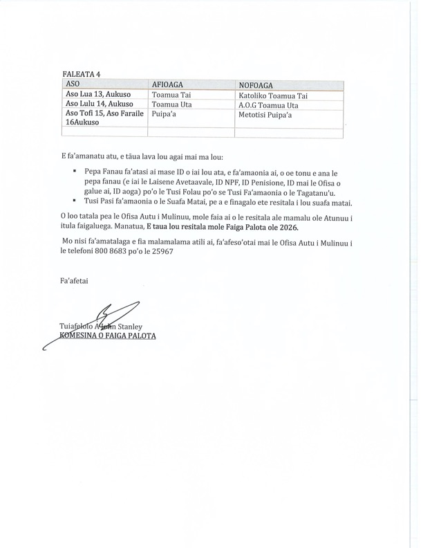 Share this: Share on Facebook (Opens in new window) Facebook Share on X (Opens in new window) X Related Share via: Facebook Twitter LinkedIn More Related posts: JOB VACANCY : FINANCE ASSISTANT EATHU CASTING AND FORGING CO., LTD DBS SPECIAL ADVERTISEMENT SPA Vehicle Tender Sale Post navigation Fa’asilasilaga- Ofisa Komesina Faigapalota OPINION :The Marist Legacy and Core Values: Actions that Speak Louder than Words