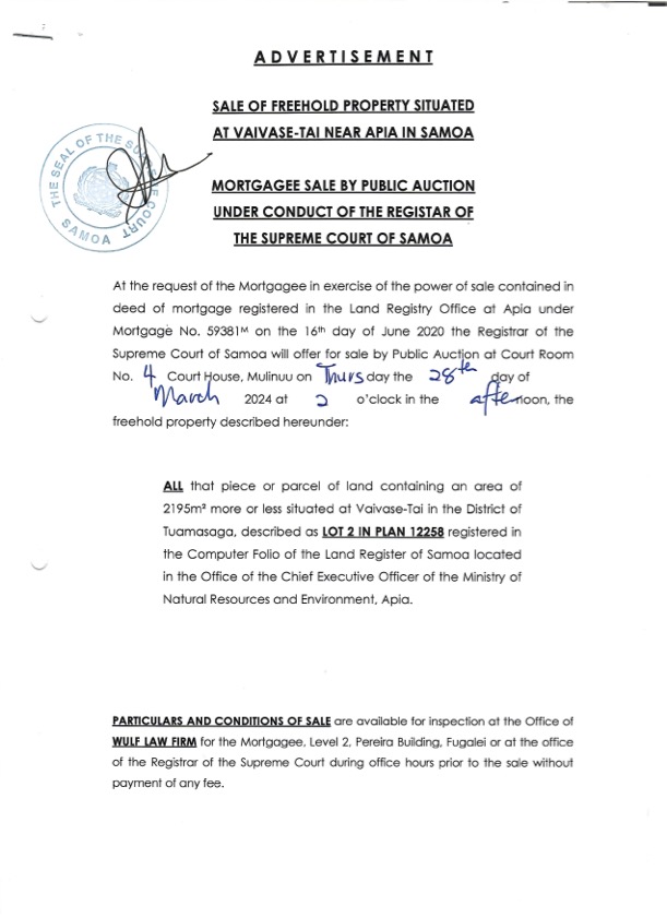 Share this: Share on Facebook (Opens in new window) Facebook Share on X (Opens in new window) X Related Share via: Facebook Twitter LinkedIn More Related posts: Samoa Shipping Corporation Vacancy Advertisement. JOB VACANCIES – FOOTBALL FEDERATION SAMOA CBS Request For Proposals FOTU SAMOA II TRIP APIA-PAGO PAGO Post navigation MY SAY : Urgently Needed! New, Safer, Apia Port. OEC – Eligible Voters Registration