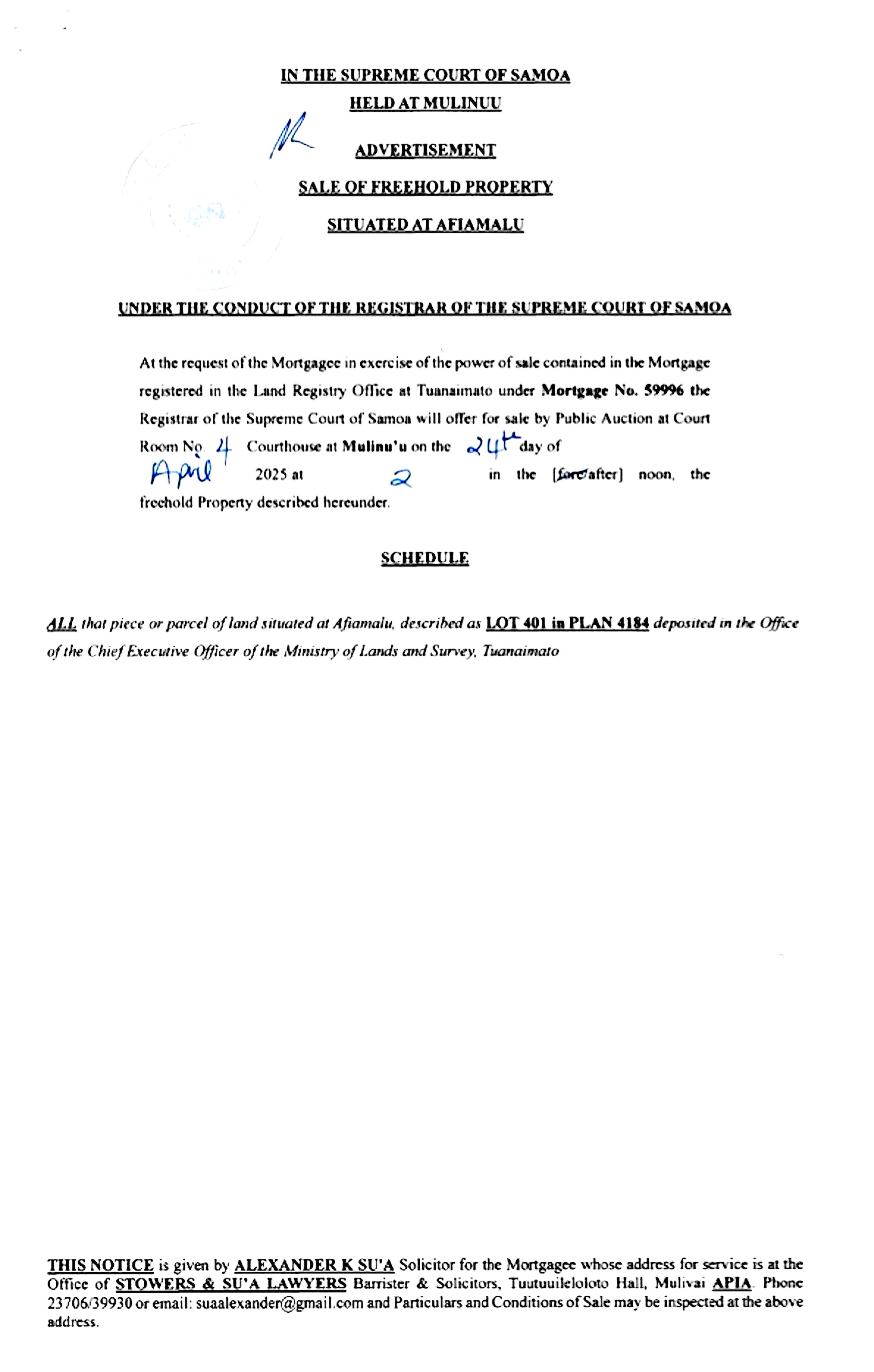 Share this: Share on Facebook (Opens in new window) Facebook Share on X (Opens in new window) X Related Share via: Facebook Twitter LinkedIn More Related posts: BSP Easter Trading Hours Freehold Land For Sale – Aleisa Fa’aaliga Taua Kamupani Va’a Samoa BSP Samoa – System Maintenance Notice Post navigation Stirs Of Hope For Early General Election Freehold Property Sale- Tiapapata