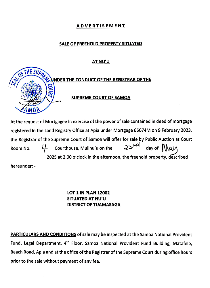 Share this: Share on Facebook (Opens in new window) Facebook Share on X (Opens in new window) X Related Share via: Facebook Twitter LinkedIn More Related posts: JOB VACANCY : FINANCE ASSISTANT EATHU CASTING AND FORGING CO., LTD PUBLIC TRUST OFFICE VACANCY PIYO PIYO (SAMOA) INTERNATIONAL CO. LTD Post navigation Better Quality Products, Key To Trade Success For Pacific Region SALE OF PROPERTY – Aleisa