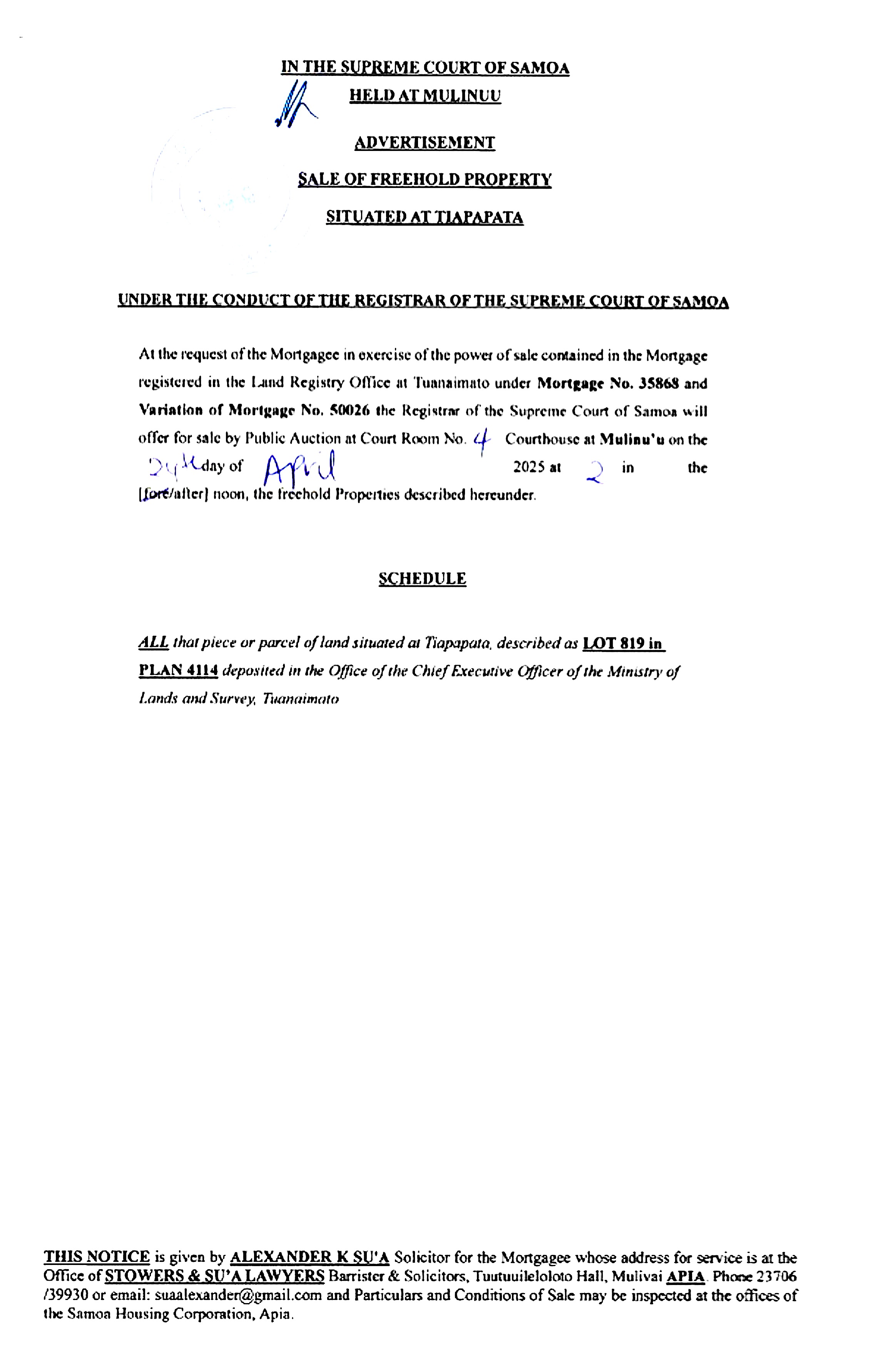 Share this: Share on Facebook (Opens in new window) Facebook Share on X (Opens in new window) X Related Share via: Facebook Twitter LinkedIn More Related posts: DBS SPECIAL ADVERTISEMENT SPA Vehicle Tender Sale Samoa Shipping Corporation Vacancy Advertisement. JOB VACANCIES – FOOTBALL FEDERATION SAMOA Post navigation Freehold Property Sale – Afiamalu Sale Freehold Property – Afiamalu