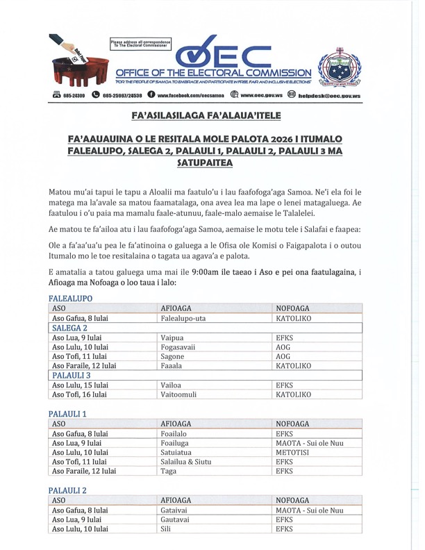 Share this: Share on Facebook (Opens in new window) Facebook Share on X (Opens in new window) X Related Share via: Facebook Twitter LinkedIn More Related posts: DBS SPECIAL ADVERTISEMENT SPA Vehicle Tender Sale Samoa Shipping Corporation Vacancy Advertisement. JOB VACANCIES – FOOTBALL FEDERATION SAMOA Post navigation DEAR OH DEAR : Hey We Won….Thank You U20 OPINION : Selective memory, outright lies, and lost integrity!