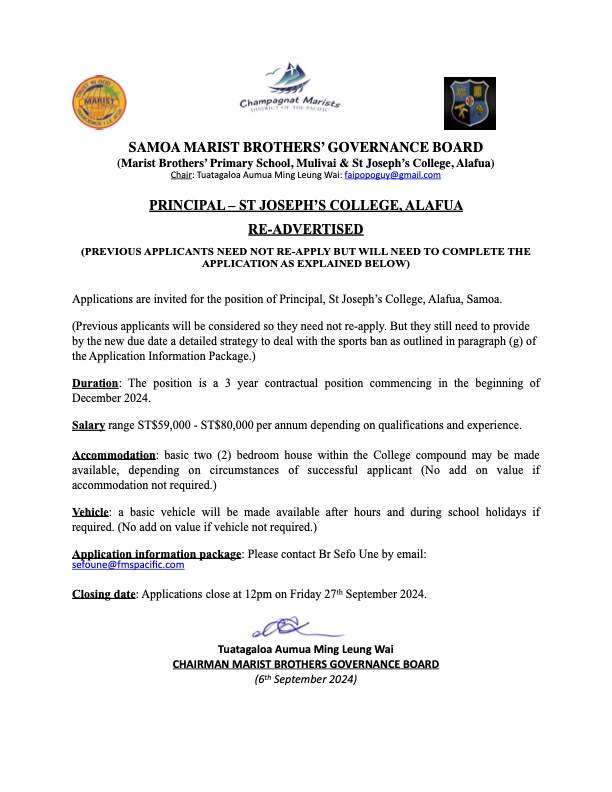 Share this: Share on Facebook (Opens in new window) Facebook Share on X (Opens in new window) X Related Share via: Facebook Twitter LinkedIn More Related posts: Asaga Women’s Committee Sewing Project Closed Vaimea Primary School’s Brightest Wants To Teach Japanese Government (MEXT) Scholarship Long Serving JICA Volunteer Returns To Teach In Samoa After 30 Years Post navigation ANZ New Zealand CEO to visit Samoa next week JICA Offers Three Study Awards Under SDG Global Leaders Program 2024.