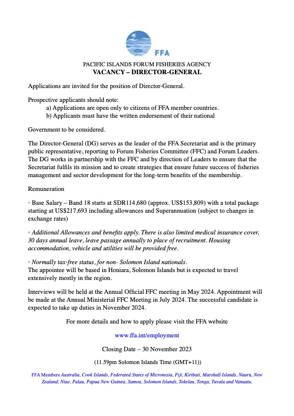 Share this: Share on Facebook (Opens in new window) Facebook Share on X (Opens in new window) X Related Share via: Facebook Twitter LinkedIn More Related posts: DBS SPECIAL ADVERTISEMENT SPA Vehicle Tender Sale Samoa Shipping Corporation Vacancy Advertisement. JOB VACANCIES – FOOTBALL FEDERATION SAMOA Post navigation Two hundred volunteers unite to ‘Go Green’ Apia DOMESTIC INTER-ISLAND SAILING SCHEDULE FOR DECEMBER 2023