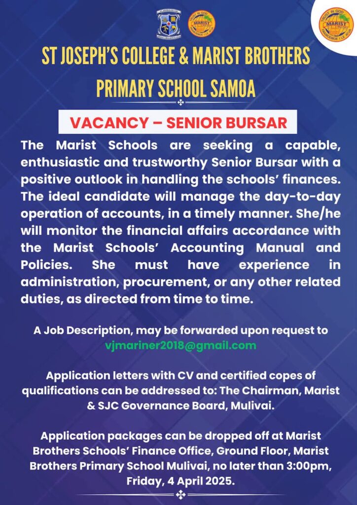 Share this: Share on Facebook (Opens in new window) Facebook Share on X (Opens in new window) X Related Share via: Facebook Twitter LinkedIn More Related posts: JOB VACANCY : FINANCE ASSISTANT EATHU CASTING AND FORGING CO., LTD DBS SPECIAL ADVERTISEMENT SPA Vehicle Tender Sale Post navigation Conservation Expedition to Strengthen Tokelau’s Environmental and Community Resilience Next Post