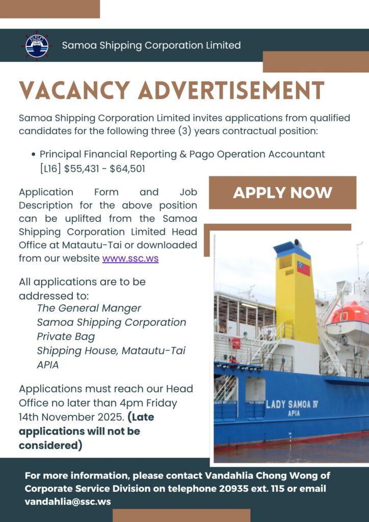 Share this: Share on Facebook (Opens in new window) Facebook Share on X (Opens in new window) X Related Share via: Facebook Twitter LinkedIn More Related posts: JOB VACANCY : FINANCE ASSISTANT BSP Samoa – System Maintenance Notice BSP Ratesheet 01.10.25 Public Liquidation Notice: San-Chih Asset International Holding Corp. Post navigation Dear Oh Dear : Are Women Really A Royal Pain? Why Mothers Love Are Special
