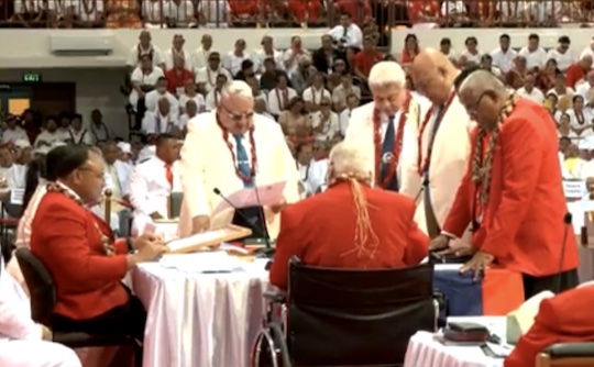 PM Laauli Polataivao Fosi appointed Minister of Works, Toelupe Pou Onesemo and Finance Minister ,Mulipola Anarosa Molio’o, at the recent opening of Parliament.